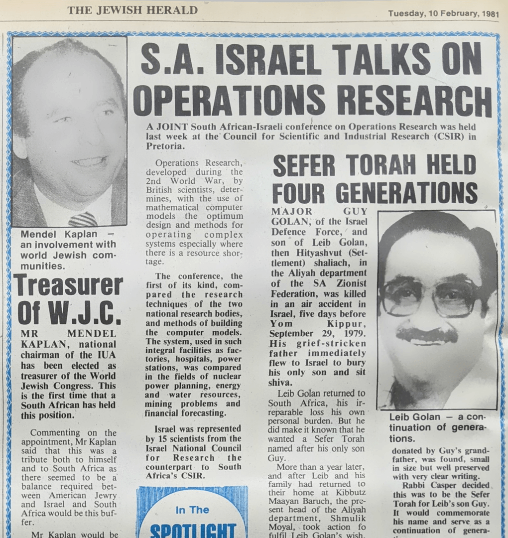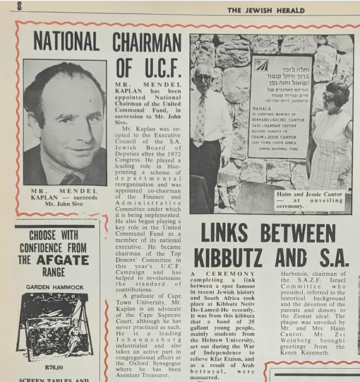 Mendel becomes involved in the Israel United Appeal (IUA), the fundraising arm of the South African Zionist Federation (SAZF), as organiser for Johannesburg’s top donors.