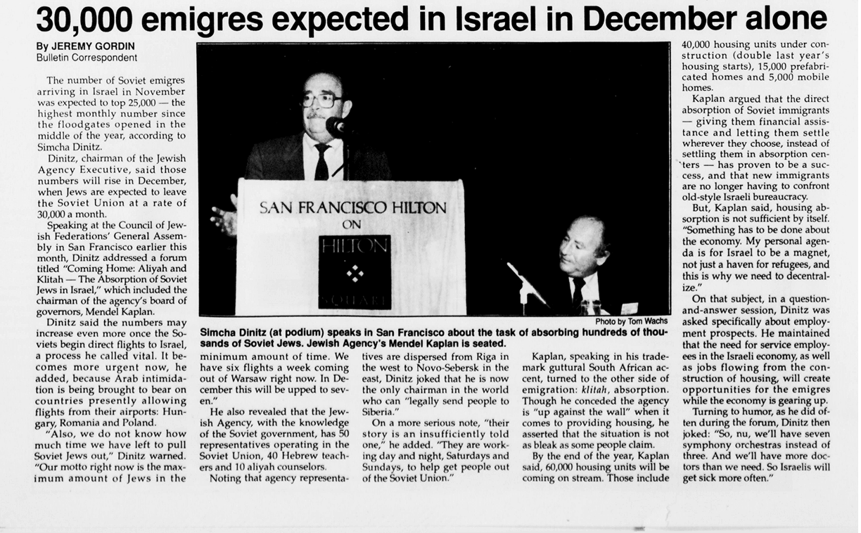 The real issue underlying Mendel and Sharansky’s exchange was the sheer scale of Aliyah. Restrictions on Soviet immigration were lifted in November 1989 and a million Soviet Jews poured into Israel in record time. Old solutions wouldn’t cut it—this was a whole new challenge.